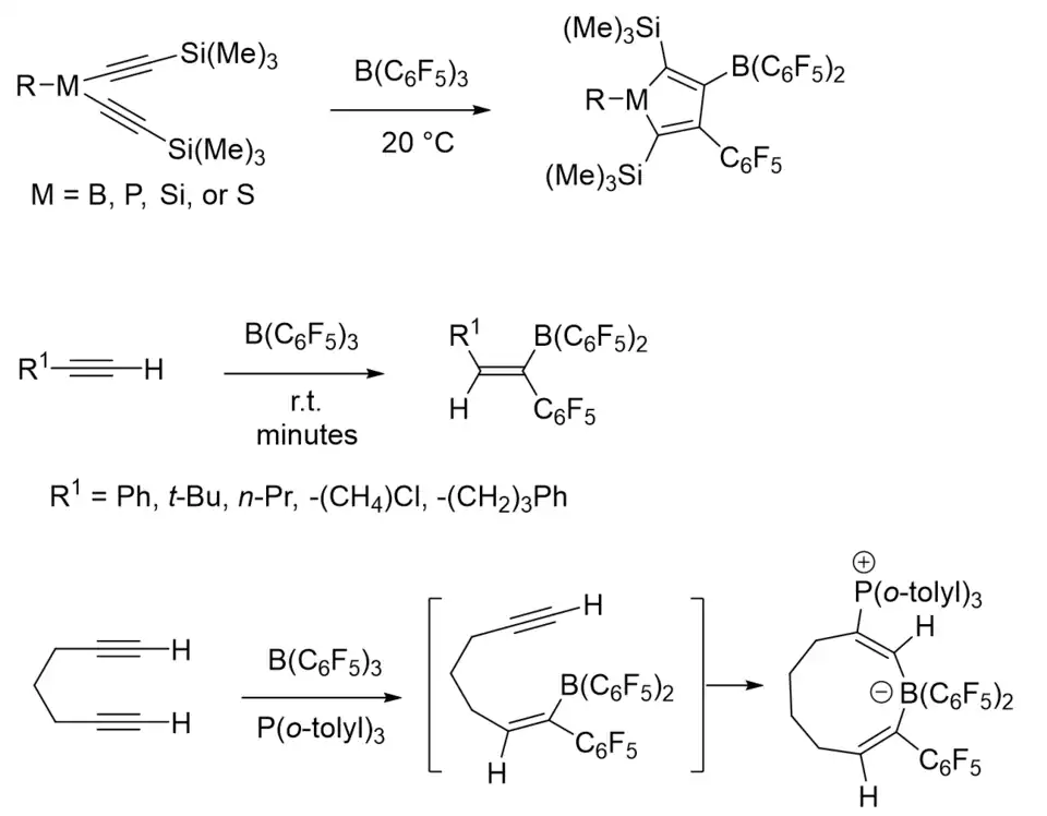 2. ^ a b Kehr G.; Erker, G. (2016). "Advanced 1,1-carboboration reactions with pentafluorophenylboranes". Chemical Science. 7 (1): 56–65. doi:10.1039/c5sc03282b. PMC 5508682. PMID 28757997.