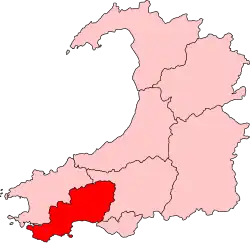 ![]() Carmarthen West and South Pembrokeshire shown within the Mid and West Wales electoral region and the region shown within Wales | |