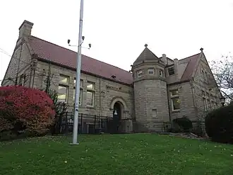 The Carnegie Free Library in McKeesport, Pennsylvania, is a Public Library built with funds from Pittsburgh steel magnate Andrew Carnegie. McKeesport is located about 15 miles up the Monongahela River from Pittsburgh. The grant for this library was commissioned April 2, 1899. Out of approximately 1,688 libraries funded by Carnegie in America, McKeesport's was the 12th be commissioned. It was listed on the National Register of Historic Places in 1980.[1]