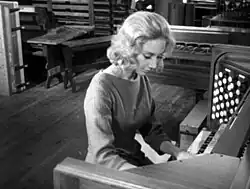 Carnival of Souls features an original organ score by local Kansas City organist and composer Gene Moore. Film and music scholar Julie Brown comments on the score, noting: "The organ is one of the spectral presences in Carnival of Souls, summoning up, or being summoned up by, the various allusions in the film to cinema's past."[20] Screenwriter John Clifford has stated that the locations Harvey chose for the film (particularly the Saltair Pavilion, and the grand church organ) influenced the decision to use an organ score.[20] The onscreen depiction of the organ played by Mary was implemented by Harvey to add to the film's "Gothic look."[21]