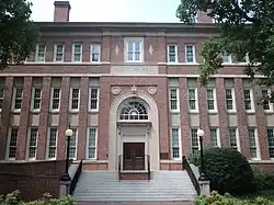 University students protested the name "Saunders Hall" starting in 2001, when the Black Student Movement began protesting the building's name.[8] The Real Silent Sam Coalition, an advocacy group dedicated to raising awareness about the racialized history of spaces on campus, launched a movement in 2015 to rename Saunders Hall, place a plaque on Silent Sam that contextualizes its history, and implement a historical tour of the racialized space on campus for first-year students.[8] The 10–3 vote to make the changes reflected a divisions among trustees about how to address the university's racial history.[9] Other buildings on campus named after people associated with white supremacy include the Julian Shakespeare Carr Building, Josephus Daniels Student Stores, John Washington Graham Residence Hall, J.G. de Roulhac Hamilton Hall, Cameron Morrison Residence Hall, John J. Parker Residence Hall, Thomas Ruffin Residence Hall and Cornelia Phillips Spencer Hall.