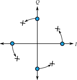 A common form of decision-directed carrier recovery begins with quadrature phase correlators producing in-phase and quadrature signals representing a symbol coordinate in the complex plane. This point should correspond to a location in the modulation constellation diagram. The phase error between the received value and nearest/decoded symbol is calculated using arc tangent (or an approximation). However, arc tangent, can only compute a phase correction between 0 and . Most QAM constellations also have phase symmetry. Both of these shortcomings came be overcome by using differential coding.[2]
