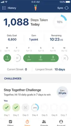 Carrot Rewards was a mobile app for residents of three Canadian provinces and one territory, allowing users to complete health questionnaires and track steps in exchange for rewards points.[1] The app was developed by Toronto-based Carrot Insights, a certified B corporation founded in 2015.[2] The app was first launched in British Columbia during March 2016, followed by Newfoundland and Labrador during June 2016, Ontario during February 2017, and the Northwest Territories only weeks before the app discontinued service in June 2019.[3] Users could choose during sign-up whether they want Aeroplan, Scene, Petro-Points, More Rewards or Drop rewards points.[4] RBC Rewards was also added as an option in June 2018.[5] Survey points were paid for by the organization which created the survey and step points were paid for by the provincial government where the user lives.[6] Carrot Rewards had also partnered with Heart & Stroke, Diabetes Canada and YMCA Canada.[7] The app was later expanded to include questionnaires and surveys on energy conservation and financial literacy.[8] In November 2018, an optional paid tier was added to the Carrot app, allowing users to receive bonus points for completing their goals.[9] Carrot shut down on June 19, 2019, after their "funds eventually ran out and [they] could no longer be in business".[10] However, in December 2019, social media accounts were updated with statuses saying “stay tuned”. In January 2020, Optimity bought Carrot Rewards and relaunched the health app under a new model.[11]