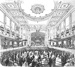 Built by Georg Carstensen, founder of Tivoli Gardens, Casino was originally envisioned as a "Winter Tivoli" with bazaar, promenade concerts and soirées. Carstensen financed the project through the sale of shares. In November 1845, he had raised 200,000 Danish rigsdaler.[1] The building was designed by H. C. Stilling who had also worked for Carstensen during the establishment of Tivoli Gardens. The entertainment venue opened on 22 February 1847.[2]