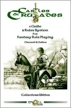 Castles & Crusades is a fantasy role-playing game designed to hearken back to the earliest days of D&D, while taking into account the improvements in role-playing rules that had occurred over the previous 30 years. The game's name comes from the Castle & Crusade Society, a games club founded by D&D co-creator Gary Gygax in 1970,[1] four years before the publication of D&D.[2] As RPG historian Stu Horvath pointed out, C&C was "developed with an eye toward emulating the feel of the original Dungeons & Dragons."