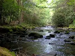 Cataloochee was largely spared the logging boom that deforested much of southern Appalachia in the early 20th century, although Suncrest Lumber and Parsons Pulp and Lumber had purchased most of the surrounding ridgeline with intent to cut it.[24] Many residents of Cataloochee found employment at logging camps at Hartford, Crestmont, and Big Creek, all located along the Pigeon River to the north, and Walnut Bottom, located on the other side of Sterling Ridge.[25] The arrival of the national park movement in the 1920s put an end to large-scale logging operations in the northeastern Smokies before they reached the Cataloochee lowlands.