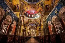 The Cathedral Basilica of Saint Louis, also known as the Saint Louis Cathedral or the New Cathedral,[3][4] is a Catholic cathedral in the Central West End neighborhood of St. Louis, Missouri. Completed in 1914, it is the mother church of the Archdiocese of St. Louis and the seat of Archbishop Mitchell T. Rozanski. The cathedral is named for Saint Louis and was designated a basilica by Pope John Paul II in 1997.[5]