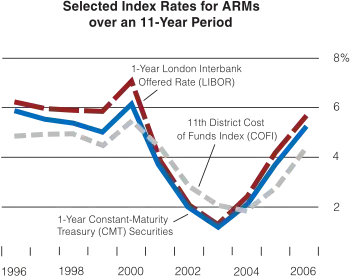 Robert Shiller shows that the inflation adjusted U.S. home price increase has been about 45% during this period,[74] an increase in valuations that is approximately consistent with most buyers financing their purchases using ARMs. In areas of the United States believed to have a housing bubble, price increases have far exceeded the 50% that might be explained by the cost of borrowing using ARMs. For example, in San Diego area, average mortgage payments grew 50% between 2001 and 2004. When interest rates rise, a reasonable question is how much house prices will fall, and what effect this will have on those holding negative equity, as well as on the U.S. economy in general. The salient question is whether interest rates are a determining factor in specific markets where there is high sensitivity to housing affordability. (Thomas Sowell points out that these markets where there is high sensitivity to housing affordability are created by laws that restrict land use and thus its supply. In areas like Houston which has no zoning laws the Fed rate had no effect.)[75]