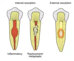 - ^ a b Ne RF, Witherspoon DE, Gutmann JL (January 1999). "Tooth resorption". Quintessence International. 30 (1): 9–25. PMID 10323155.