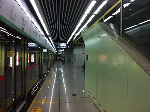 Central Park Station (Chinese: 中央公园站) is a station on Line 1 and Line 7 of the Suzhou Metro. The station is located in Suzhou Industrial Park of Suzhou. It has been in use since April 28, 2012, the same time of the preoperation of Line 1.[1]