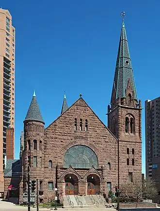 Central Presbyterian Church is a church in downtown Saint Paul, Minnesota, United States. The congregation was founded in 1852 and built its first building in 1854, which was later enlarged during the 1870s. The rapidly growing congregation outgrew the building, so they built a new church building in 1889. The building, an example of Richardsonian Romanesque architecture, is listed on the National Register of Historic Places.[2]