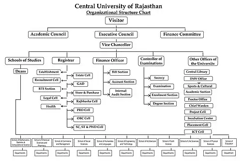 Central University of Rajasthan (CURAJ) is a central university located in Ajmer, Rajasthan, India. CURAJ has 12 schools, 36 academic departments and one community college covering technology, science, humanities, commerce, management, public policy and social science programs with a strong emphasis on scientific, technological and social education as well as research. Total student enrollment at the university exceeds 3000 and includes students from over 23 states.