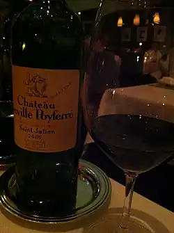 Château Léoville-Poyferré is a winery in the Saint-Julien appellation of the Bordeaux region of France. Château Léoville-Poyferré is also the name of the red wine produced by this property. The wine produced here was classified as one of fifteen Deuxièmes Crus (Second Growths) in the original Bordeaux Wine Official Classification of 1855.