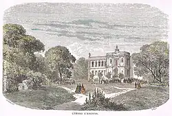 In the mid 19th century it was the setting for soirées and balls for the Parisian middle classes, mentioned by (among others) Offenbach in a first act rondo in La Vie parisienne: "Qu'on me mène au bal d'Asnières!" ("That takes me to the ball at Asnières!"). On 25 August 1850 a great international festival was put on there, gathering the best French and Belgian amateur choirs of the time and totalling 2000 singers and 25,000 spectators.[2] Offenbach referenced this in the seventh scene in Geneviève de Brabant (1867), which takes place in the imaginary "château d’Asnières, home of Charles Martel" and includes the phrase "Amis, faisons vibrer sous ces dômes brillants / Nos chœurs les plus bruyants !" ("Friends, under these shining domes / Let's make our loudest choirs ring!"). In 1897 some of its rococo panelling was sold off and reused for the French Dining Room at Cliveden in the United Kingdom.