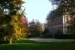 The latter included a neo-classical mansion built in 1878 by architect Dainville [1] and a 19-hectare (47-acre) romantic garden. Work on the park began in 1835 under the leadership of landscape architect Louis-Sulpice Varé, who would later be entrusted by Napoleon III to design the Bois de Boulogne, in Paris.[2] It was completed in 1884 by the Bühler brothers, creators of the Parc de la Tête d'Or, in Lyon.[3] The result is a romantic garden following the “modern” laws depicted by Jean-Jacques Rousseau in La Nouvelle Héloïse, as opposed to the previously fashionable French garden style.[1] The Château, a Louis XIIIth-styled mansion, is home to several social venues, its landmark being the Grand Salon and its large terrace overlooking the surrounding forests of Halatte and Chantilly.