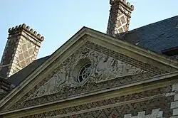 In 1598, Jacques Le Faë (d. ca. 1630), Adviser to the King, 'Controleur general des traites dominilales et impots en la province de Normandie', acquires the Alinette domaine from the Cormeilles Family on the 6th of April. He builds the present Château Louis de XIII style in bricks, works will only start in 1616 (exchange of contract only on 14 May 1607) and will be completed in 1632.[2] (The inscription 1616 can be found on one of the main chimneys.) He married Anne Petit, then died in 1630, and the estate is ruled by his wife on behalf of her nobles children until 1637. Adrien (d. ca. 1669) Le Fae Sieur de Bosc Theroulde, Adviser to the king, 'Maitre en sa Chanmbre de Normandie', inherited the Estate and was made escuyer in 1640. He built the chapel (1646–1648) along the Chateau, named after his patron saint, after being saved from the plague of Rouen (in 1637 in Rouen 11,000 people died in 10 months). Christophe Charles Le Faë (died 28 March 1707), Lord of Bosc Theroulde, Saint Germain, Mêtillon, La Mivoie and other places, adviser to the Parliament of Rouen, appointed on 3 March 1670, succeeded to Adrien and married Madeleine Le Roux (died 8 May 1719). A stone shield located on the west wing represents their respective merged family shields.
