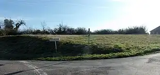 Situated 900 meters from the promontory's extremity,[27] a rampart was constructed to the east of the site, delineating and fortifying it along the sole unprotected side of the plateau. This rampart does not resemble the murus gallicus,[29] but exhibits characteristics associated with the "Fécamp-type" ramparts.[30][31][Note 4] In 1978, the rampart was cut through by a road, revealing its internal structure. The base of this cross-section consists of an initial clay embankment with charcoal inclusions and possibly a wooden framework.[32] The embankment is approximately 10 meters wide and seems to have been built during La Tène A or B1 (c. 400 BCE). However, its exact function remains undetermined, as it may have served as a primitive rampart or another construction.[L 7]