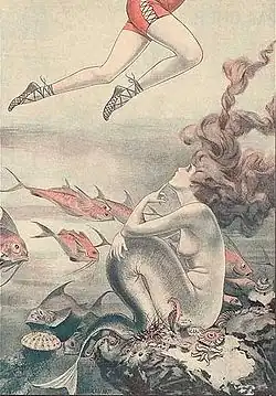 Hérouard often worked with fairy tale characters and was also a pioneer in the comics format.[1] He submitted work to La Semaine de Suzette before being approached by Charles Saglio, who had just purchased La Vie Parisienne, to become an illustrator for the magazine. At first he resisted, saying he didn't think he was skilled enough. Two years later, Hérouard's first illustration for La Vie Parisienne was published on 9 November 1907. The cover illustrations for the magazine were divided among several illustrators, with Hérouard contributing most frequently between 1916 through 1930. He continued his work with the magazine until 1952. He often created illustrations for books such as Dangerous Liaisons in 1945. For Pierrot, he drew Gil Blas de Santillane (1949), Tambour Battant (1950) and Le Capitaine Eclair (1951). Under the pseudonym of Herric, he also created erotic and sadomasochistic illustrations for various books including the Kama Sutra. He died on 2 June 1961 in Paris.