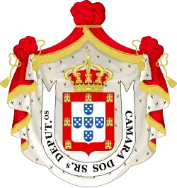 The Chamber of Deputies of Portugal, alternatively translatable as the House of Commons and formally styled the Chamber of the Gentlemen Deputies of the Portuguese Nation (Portuguese: Câmara dos Deputados or Câmara dos Senhores Deputados da Nação Portuguesa) was the lower house of the Cortes Gerais, the legislature of the Kingdom of Portugal during most of the constitutional monarchy period. The Chamber of Deputies directly represented the Portuguese Nation, elected through direct suffrage of the electoral circuits corresponding to the districts of Portugal.[1] During the First Republic, the Chamber of Deputies was remodeled after the US House of Representatives.