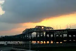 The Champlain Bridge (French: Pont Champlain) was a steel truss cantilever bridge with approach viaducts constructed of prestressed concrete beams supporting a prestressed concrete deck paved with asphalt. Opened in 1962, the bridge crossed the Saint Lawrence River, connecting the Island of Montreal to its South Shore suburbs.[3]