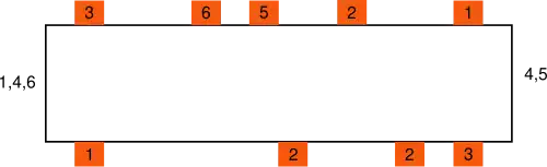 Figure 1: A channel routing problem. The numbered pins on the top and bottom of the channel must be connected. The nets specified on the left and right of the channel must be brought to that end of the channel