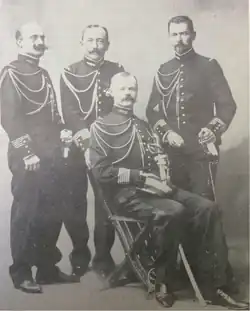 The French protocol service was facing a problem in Ecuador. In every country, an exchange of decorations between Heads of State was scheduled. And the rule of protocol was that only a head of state could be awarded the Grand Cross of the Legion of Honour. However, in Ecuador a military junta has taken power. The four officers who made up the junta, Rear Admiral Ramón Castro Jijón, Generals Luis Cabrera Sevilla and Marcos Gandara Enriquez, and Air Force Colonel Guillermo Freile Pozzo, all wanted to receive the French decoration, which was finally accepted by their French interlocutors.[2] In order to be concise, while respecting the equality of protocol, de Gaulle referred to the four strong men of the country as 'your eminent junta.[12]