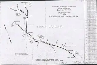 3. ^ "Charleston & Western Carolina Railway". Official Guide of the Railways. 87 (7). National Railway Publication Company. December 1954.