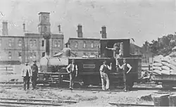 The first railway at Chattenden was a standard gauge line laid by the Royal Engineers in the early 1870s. This was used to bring building materials from a wharf at Upnor to be used in the construction of the Chattenden Munitions Depot.[2] According to a report in the issue of "Iron" dated Saturday 29 May 1875: "A detachment of non-commissioned officers and men of the Royal Engineers, commanded by Lieutenant Barker, on Saturday left the School of Military Engineering at Chatham for Upnor, where they will be quartered for some time, as they are to be employed to lay down lines of rails to connect forts on the Thames and Medway with the new powder magazines to be constructed at Chattenden Roughs, a few miles from the old magazines at Upnor Castle. It is expected that more than forty miles of these railways will be constructed."[3] This railway fell out of use when the building work was completed.[2]