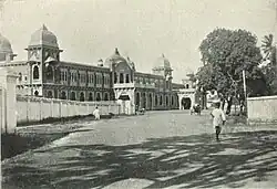The station building was constructed on a 2.5 acres (1.0 ha) land, for which 1.8 acres (0.73 ha) was acquired from S. Pulney Andy, an English physician, who, in his letter to the 'Collector of Madras,' initially refused to sell his property owing to the difficulty with which he had purchased and developed the property. However, the South Indian Railway (SIR) Company, which was then operating train services to the south, persuaded him to sell the land, for which Andy claimed ₹1 lakh (US$1,200) as compensation. After acquiring the land, the SIR invited Henry Irwin, CIE (chief engineer), who did much of latter day Indo-Saracenic in Madras, and E. C. Bird, company architect, to design a building to suit the traffic need. After several alterations in the plan, the construction work began in September 1905 and was completed in 1908.[5] It was constructed by contractor T. Samynada Pillai of thirunageswaram near kumbakonnam at a cost of ₹17 lakh (US$20,000). The station was officially opened on 11 June 1908.[6][7]