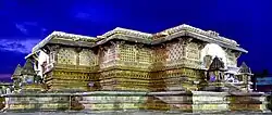 One of the Hoyasala kings was Vishnuvardhana, who came to power in 1110 CE. He commissioned the Chennakeshava temple dedicated to Vishnu in 1117 CE, a temple considered as one of "five foundations" of his legacy.[8][10] According to Dhaky – a scholar of Indian temple architecture and temple history, this temple reflects the rising opulence, political power, deep spiritual dedication to Sri Vaishnavism of Ramanujacharya, and it is his magnum opus. The main temple is called Vijaya-Narayana and the smaller temple next to it built by his queen Santala Devi is called Chennakesava in the inscriptions of his era, but these two temples are now called the Chennakesava temple and Chennigaraya temple respectively.[11]