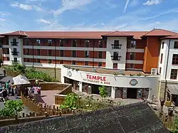 The hotel's Temple Restaurant has a heavy emphasis on special effects, with a large tower sitting in the centre of the room. Every thirty minutes, it makes a display of water fountains, it also features rapid lighting sequences and ultraviolet markings. Around the perimeter of the restaurant is a trail of leaf cutter ants which pass the tables. At the entrance to the restaurant is a tank of red bellied piranha. Due to the hotel being built partly into the side of a hill, the Temple Restaurant has no windows, and instead has a series of screens built into the walls, showing animated videos of the South American wildlife.