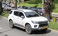 The second generation Trailblazer is built in Thailand and in Brazil.[21] It was also sold in some of the Southeast Asian countries, India, South Africa, and the Middle East, and also sold in Australia as the Holden Colorado 7 from 2012 to 2016, and being rebadged as the Trailblazer in 2017. The first-generation Isuzu MU-X also shared the platform with the second-generation Trailblazer.[22]