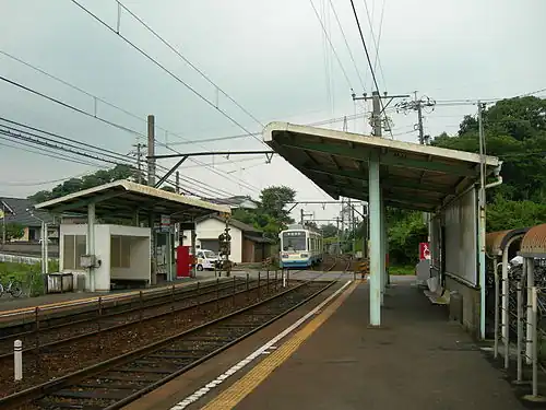 The station is served by the Chikuhō Electric Railroad Line and is 10.2 kilometers from the terminus of the line at Kurosaki Station.[1]