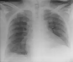 Chilaiditi syndrome refers only to complications in the presence of Chilaiditi's sign. These include abdominal pain,[2] torsion of the bowel (transverse colon volvulus)[3] or shortness of breath.[4]