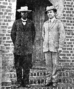 John Chilembwe, born locally in around 1871, received his early education at a Church of Scotland mission and later met Joseph Booth, a radical Baptist missionary who ran the Zambezi Industrial Mission. Booth preached a form of egalitarianism and his progressive attitude towards race attracted Chilembwe's attention.[6] Under Booth's patronage, Chilembwe travelled to the United States in 1897 for the purposes of higher education and to fundraise for Booth, beginning studies at the Virginia Theological Seminary in Lynchburg in 1898.[7] There he mixed in African-American circles and was influenced by stories of the abolitionist John Brown and the egalitarianist Booker T. Washington.[8]