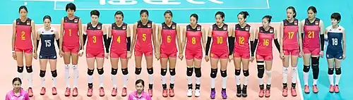 - Wang Yimei, Mi Yang, Hui Ruoqi, Chu Jinling, Zhang Xian (L), Wei Queyue (c), Yang Junjing, Cui Yongmei, Yang Xiaojun, Zheng Meizhu, Shan Danna, and Xu Yunli. Head coach: Yu Juemin