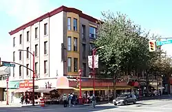 The new Chinatown business plan encourages new entrepreneurs to move in—and has attracted a longboard store and German sausage shop—as ways of restoring storefronts and bringing in a younger crowd, and to make higher-income people more comfortable in the area.[18] Attracted to the lower rent and the building's heritage status, younger businesses have moved in, often with white owners who also live in apartments above the shops.[19] The general consensus is that Chinatown's priority is to attract people of all backgrounds to Chinatown, and it is believed that the opening of non-traditional stores will bring a new flow of energy and income to the streets.[20] As a result, the commercial activity is becoming more diversified, dotted with Western chain stores. Other additions include vintage stores, two art galleries, bars, and a nightclub, built on the site of the former Ming's restaurant,[21] in an attempt to bring something of a nightlife atmosphere, reminiscent of the 1950s and 1960s, back to the neighbourhood. The diversity of new shops and businesses is believed to be necessary in creating a new image for Chinatown in order to bring vibrancy back to the area and encourage commercial activities in general, and as a way to compete with suburban districts as well as nearby Gastown and Downtown Vancouver.