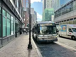 The Millennium Place development, completed in 2001, was constructed on a long-vacant lot surrounding the southbound headhouse.[25] A simultaneous station renovation included a rebuilt headhouse and a new elevator built into the new development. The $5 million project, completed in 2002, made the station fully accessible.[26][27][28] Silver Line service on Washington Street between Dudley and Downtown Crossing (now route SL5) started on July 20, 2002. Additional service to South Station (route SL4) began on October 15, 2009. Both routes operate on one-way loops in downtown Boston, serving Chinatown station only in the northbound direction.[1]