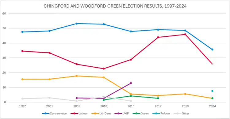 - ^ "New Seat Details - Chingford and Woodford Green". www.electoralcalculus.co.uk. Retrieved 29 March 2024.