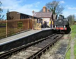 Following discussions with Network Rail, an extension of about a mile (1.5 km) to Princes Risborough main line railway station was undertaken, with a view to running into Princes Risborough station.[3] This would allow passengers to connect from Chiltern Railways services on the Chiltern Main Line. Previously, the line was reconnected at a point just yards from the head shunt at Thame Junction for special events to allow trains to run into Princes Risborough station: in October 2013, the line was reconnected for the first 3 weekends for the Railway's "Haversham & Friends" celebrations,[4] and the first through-train for 57 years, a rail tour from Aylesbury via Princes Risborough, ran on 5 October 2013.[5][6]