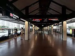 In 2012, half-height platform screen doors were installed on the MRT platforms as part of LTA's programme to improve safety in MRT stations.[28][29][30] Between 2012 and 2013, high-volume low-speed fans were installed at this station to improve ventilation at the elevated station's platforms.[31]