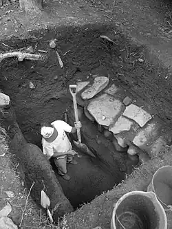 A complex of more than 100 structures was discovered by Karl Sapper in the last years of the 19th century[5] and a few mounds were excavated by Robert Burkitt in the 1920s.[6] The discovery by Burkitt of Monument 1, a stela carved in the "Miraflores" style, sparked interest among scholars, suggestive as it was that Chocolá may have been an important polity early on with distinct political connections with Kaminaljuyu.[7] This stela bears extraordinary similarities both in style and content to Kaminaljuyu Stela 10, a gigantic throne and the site's single largest monument.[8] In 2003, long-term excavations were initiated by the Proyecto Arqueologico Chocola (PACH). These investigations are exploring the social and cultural developments that led to the rise of the Classic Maya, with sophisticated city-states, hieroglyphic literacy, exquisite ceramics, and the most advanced mathematics and astronomy in the New World.