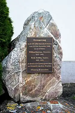Memorial to 105 victims of cholera in 1866 in Remerschen, south-eastern Luxembourg