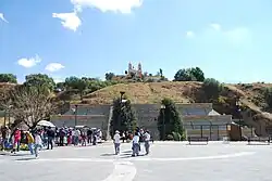 The pyramid was a place of pilgrimage in the pre-Hispanic period, and it is a place of pilgrimage today, to visit an image known as the Virgin of the Remedies, especially in September.[17] The Virgin of the Remedies is a variation of the Virgin Mary specifically dedicated to the needs of the poor.[32] Veneration of this Virgin in Mexico dates back to the Conquest, with various stories surrounding how this particular manifestation became associated with the Spanish conquest of the Aztec Empire. Most revolve around a conquistador by the name of Juan Rodríguez de Villafuerte. One story states that he brought this image with him before leaving for the New World by a soldier who had fought in Italy.[33] Another states that she was carried by Villafuerte, but lost during the Noche Triste only to be found later by a local indigenous man.[34] Yet another states that an image of this Virgin appeared on the sleeve of Franciscan friar Martín de Valencia, while praying on the pyramid mound of Cholula.[35] The Virgin of the Remedies is strongly associated with the Conquest as the protector of the conquistadors. She was made a "general" of the Spanish army in their battles against the indigenous of New Spain. During the Mexican War of Independence, she was invoked by royalist forces, while the insurgents carried the banner of the Virgin of Guadalupe. For this reason, this image is also called the Virgen Gachupina, as "gachupina" is a derogatory word for the Spanish used in Mexico.[36] The Virgin of the Remedies was one of four Virgin Mary images which were used to substitute for pre Hispanic female deities in the cardinal directions from Mexico City. This one was placed in the east, with the Virgin of Guadalupe to the north, the Virgin of Mercy to the south and the "Virgen de la Bala" to the south.[37] There is a story that a serpent lives beneath the pyramid. It is likely related to the myth of Quetzalcoatl, the feathered serpent, which was converted to the snake, related to the devil and crushed under the foot of the Virgin Mary.[38]