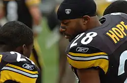 Hope was selected in the third round number 94th overall by the Pittsburgh Steelers for the 2002 season.[2] He started out the 2002 season on special teams and became a strong special teams player. In an October 27 game against the Baltimore Ravens he caused a fumble on a second quarter kickoff that led to a touchdown. He got to play his first extensive game on November 24, 2002, against Cincinnati due to injuries in the Steelers secondary picking up three tackles and one special teams tackle. The 2003 season was not much different from his first. Hope played mainly special teams.