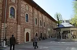 Throughout the period of the siege of Constantinople, the trapped Christian worshippers of the city participated in the Divine Liturgy and the Prayer of the Hours at the Hagia Sophia and the church formed a safe-haven and a refuge for many of those who were unable to contribute to the city's defence, which comprised women, children, elderly, the sick, and the wounded.[67][68] Being trapped in the church, the many congregants and yet more refugees inside became spoils-of-war to be divided amongst the Ottoman invaders. The building was desecrated and looted, with the helpless occupants who sought shelter within the church being enslaved.[65] While most of the elderly, the infirm/wounded, and sick were killed, and the remainder (mainly teenage males and young boys) were chained up and sold into slavery.[66]