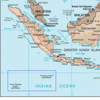 The Christmas and Cocos Islands tropical forests ecoregion (WWF ID: IM0110) covers forested areas of Christmas Island and North Keeling Island, two small seamount islands south of the Indonesian island of Java. The forests of these two islands share tree species of the Indo-Pacific and Melanesian types on nearby islands, the forests of Christmas Island and North Keeling Island are unique in how they reflect the effects of large populations of terrestrial red crabs (Gecarcoidea natalis). Because of the remoteness of the islands, there are many endemic species.[1][2][3][4]