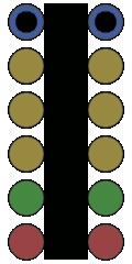 Modern drag races are started electronically by a system known as a Christmas tree. A common Christmas tree consists of a column of seven lights for each driver or lane. Each side of the column of lights is the same. At an NHRA national event, the Christmas Tree, which was first used in April 2011, from the top down, consists of a blue LED light set (top and bottom halves), then three amber bulbs, then a green bulb and a red bulb.[1] At other events, and NHRA national events prior to 2011, the function of the blue light set was performed by four smaller amber bulbs.