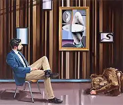 In his series "Speculative Realism", Winter extends space and reality, combining the installation with figurative and abstract painting.[9][20] The work is influenced by the novel 1Q84 by the Japanese writer Haruki Murakami and deals with a parallel world that is very close to ours. This series has been shown in Cologne and Berlin at Lehr Zeitgenössiche Kunst under the title "2Q13 Speculative Realism" and in New York at Garis & Hahn under the title "Virtual Being". In addition to his usual figurative approach to painting Winter includes in this series Abstraction and Cubism styles.[8]