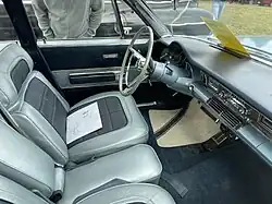The dash had been designed with Chrysler's push-button controls for the TorqueFlite automatic in mind, with the "AstraDome" instrument cluster covering the part of the steering column a column shifter would come out from under then-standard practice, so manual cars used a floor shifter.[8] Due to the installation of the "AstraDome" instrument cluster extending outward towards the steering wheel, the traditional installation of the turn signal lever was relocated to the dashboard underneath the "TorqueFlite" pushbutton gear selectors and was installed as a sliding lever that would return to center as the steering wheel returned to the center position.
